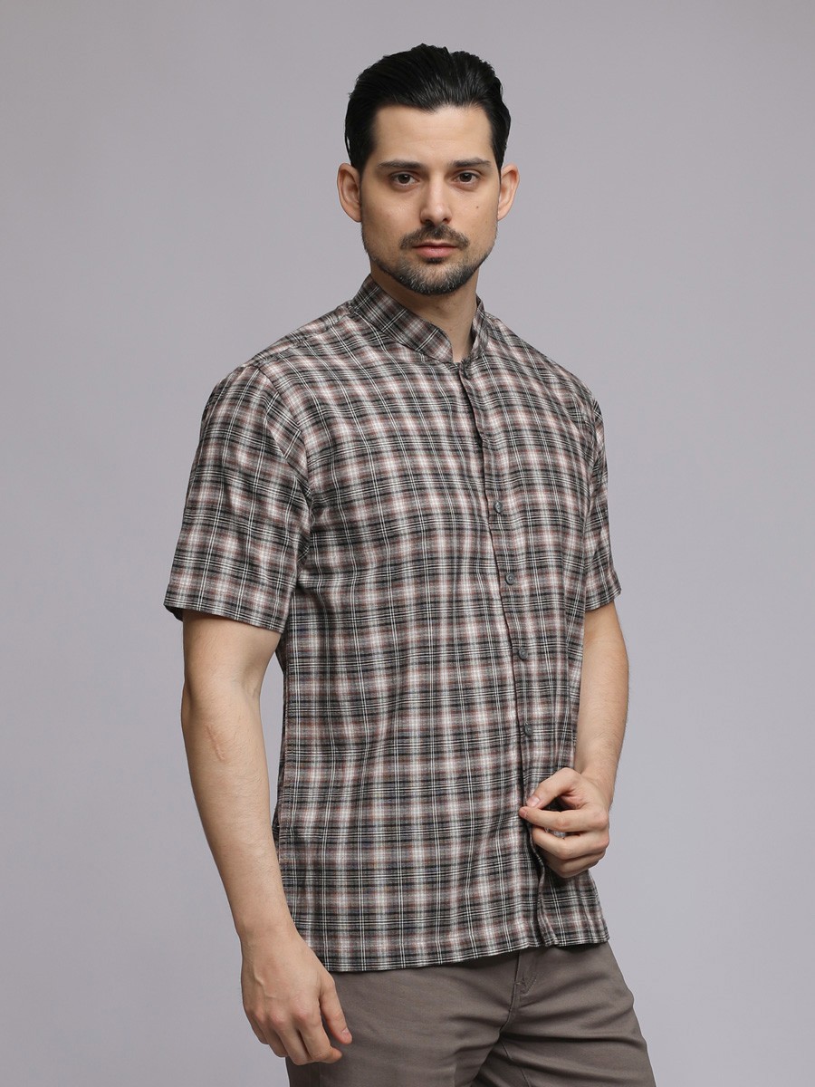 Browny & Black Check SHORT SLEEVE KAFTAN for a statement relax and simple shape.